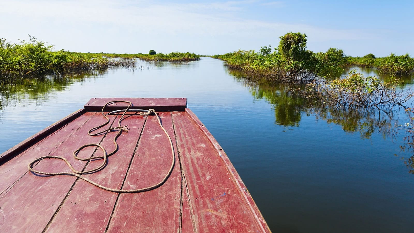 Round out the day with a stunning sunset cruise across the Tonle Sap Lake. We will be collected from the hotel and set off on a short drive to the pier, where we board a private wooden boat and hit the waters. The revered lake – also called the Great Lake – is the beating heart of Cambodia, providing Cambodians with the majority of their protein. Standing as South-east Asia’s largest body of freshwater, it is one of the richest inland fishing areas in the world and is home to more than 149 fish species. It is also a popular breeding ground for many rare and endangered birds. In 1997, it was designated a UNESCO biosphere reserve. It is also home to several floating villages where people live out their lives on the water. During our two-hour cruise, we can watch the sun sink into the horizon while enjoying canapés and cocktails on-board. We then drive back to the hotel.